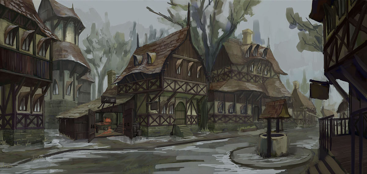 Artstation Medeival Village El Wie Fantasy Village Fantasy Concept Art Medieval Artwork